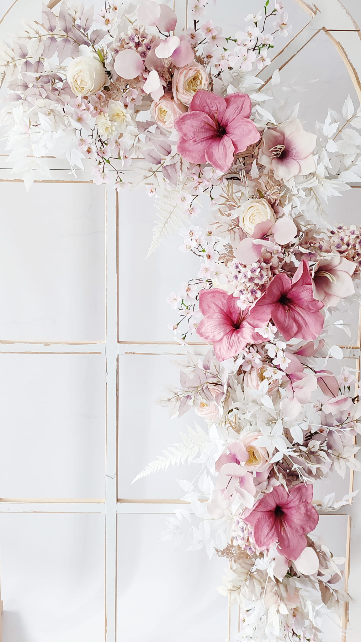 Girlanda o długości 200cm, w kolorystyce biało- różowej.