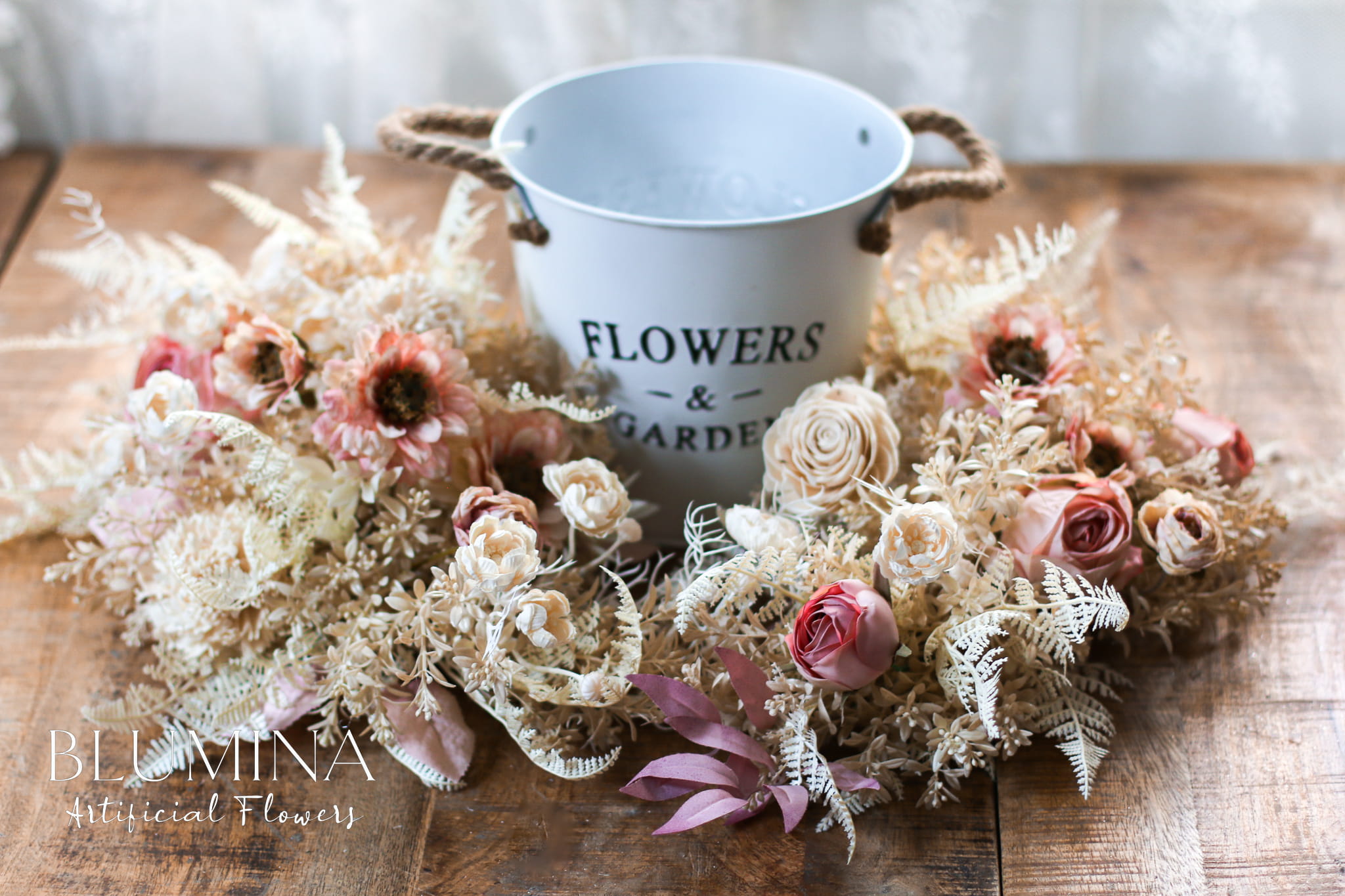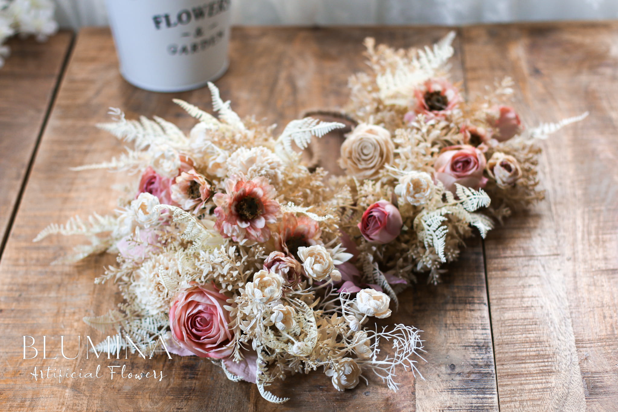 Kompozycja w stylu boho, ze sztucznych kwiatów wysokiej jakości.