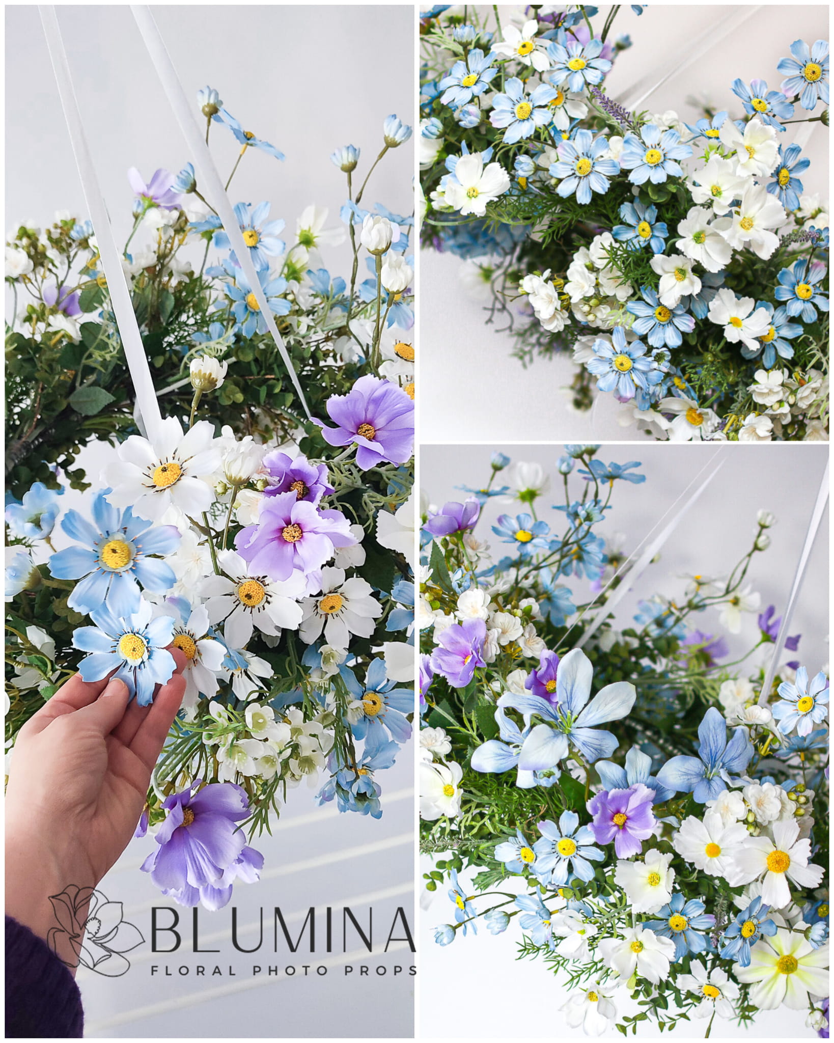 Podwieszany okrąg kwiatowy , wykonany z najwyższej jakości kwiatów.
