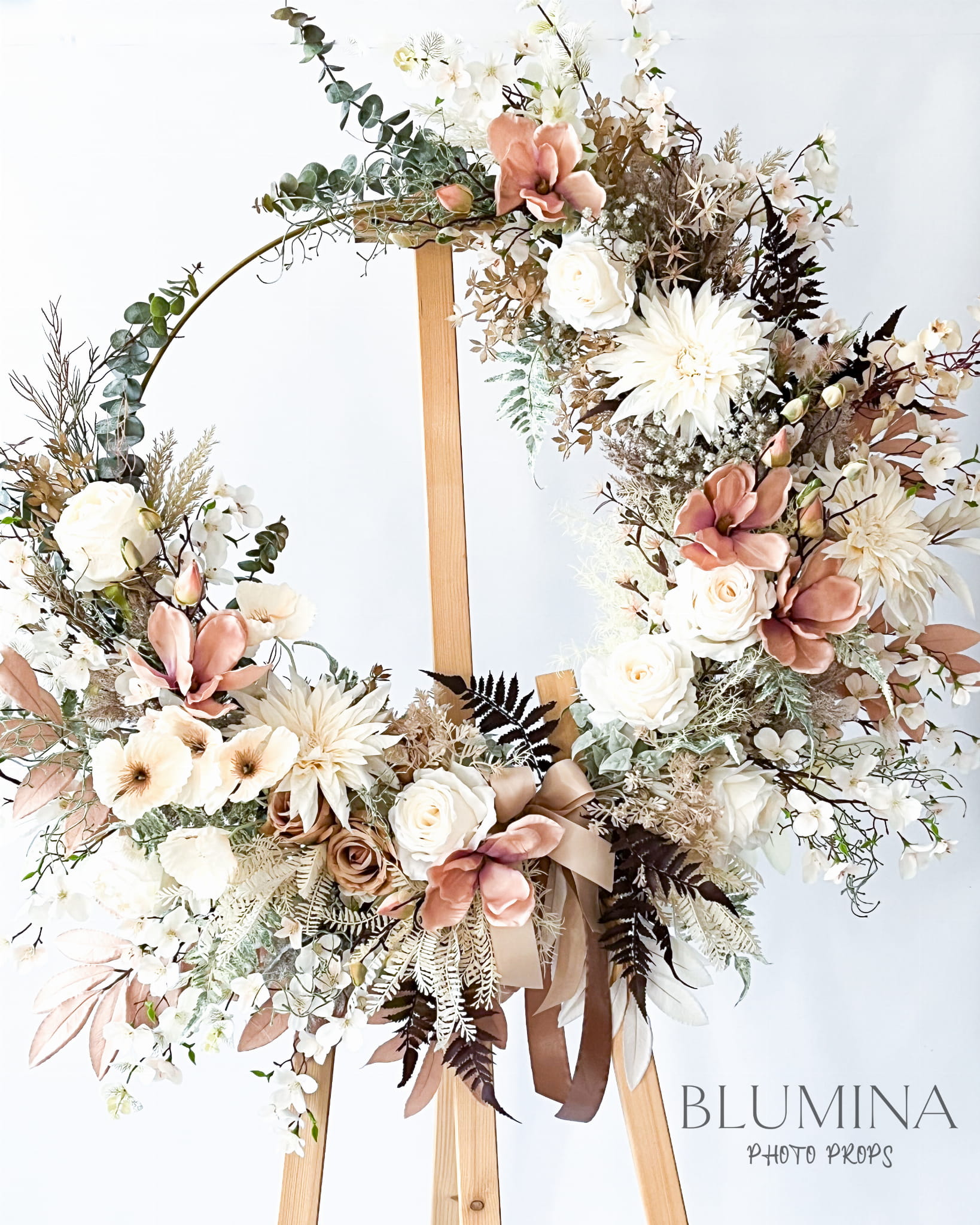 Ogromny okrąg kwiatowy w stylistyce "boho".