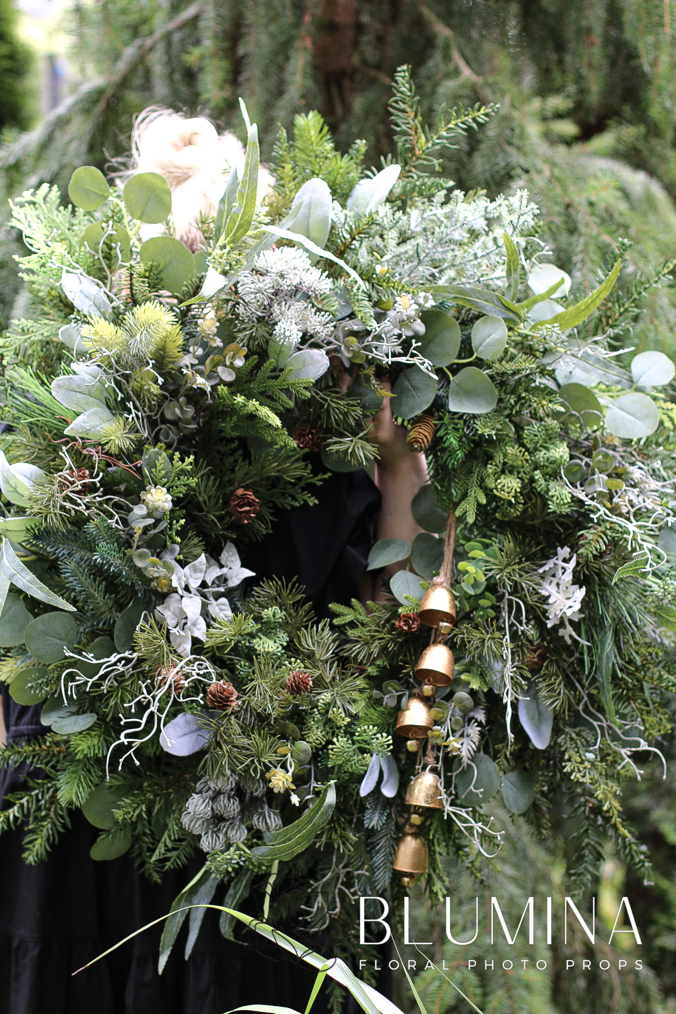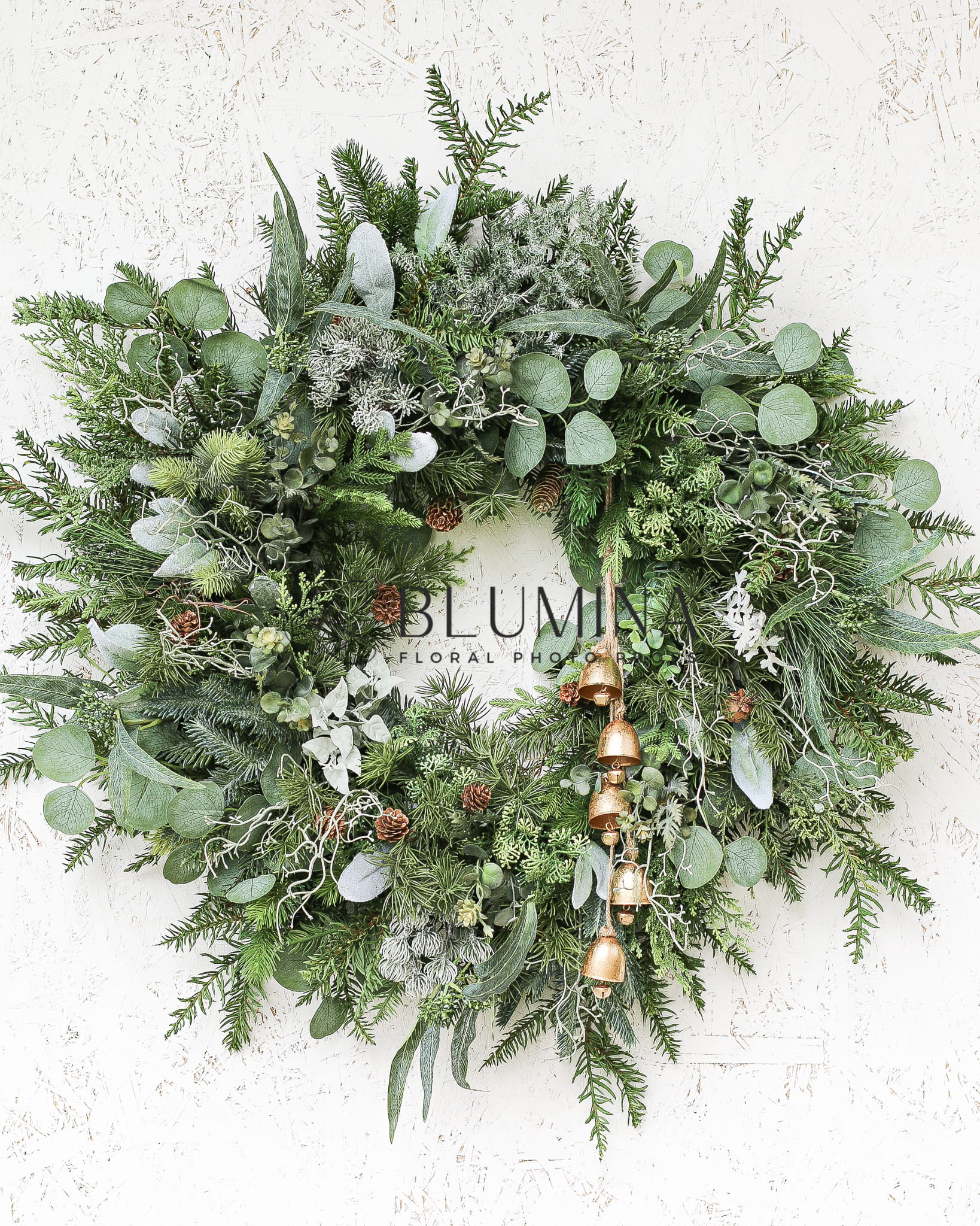 Wieniec wykonany został ręcznie w naszej pracowni, z wykorzystaniem miksu najładniejszej, różnorodnej, zimowej zieleni i eukaliptusa.