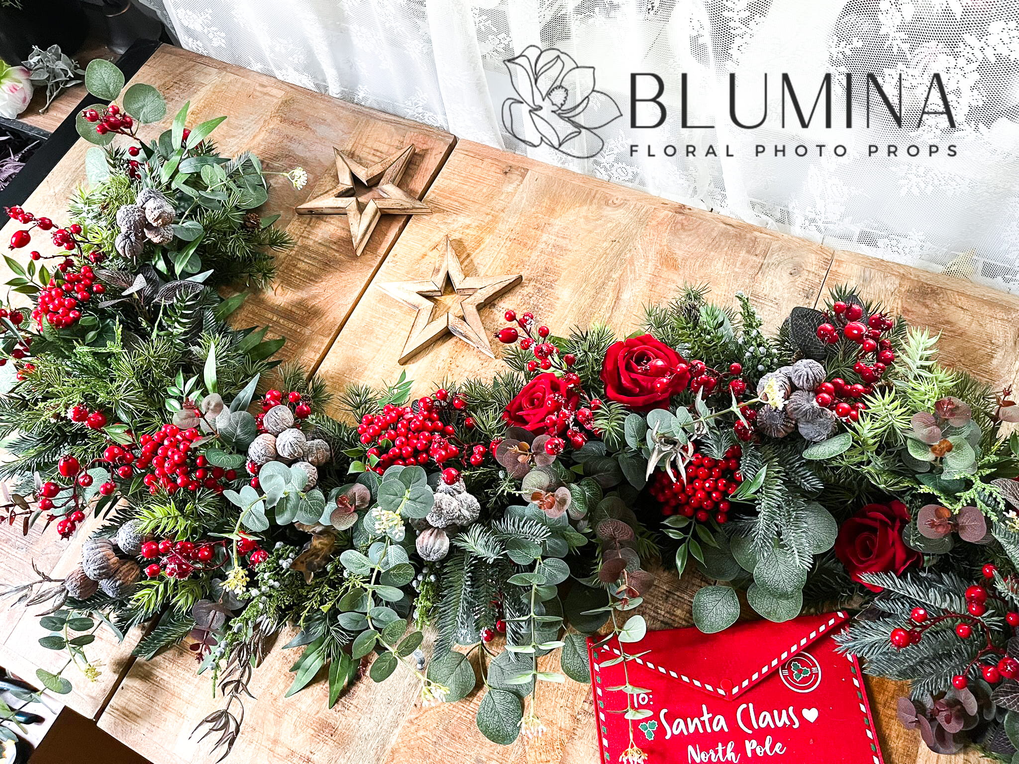 W skład girland wchodzi zestaw najładniejszej, zimowej zieleni (modrzew, świerk, jodła, szyszki, jarzębina, głód, eukaliptus itd).